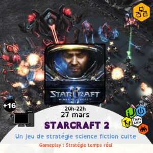 Chaque vendredi soir de 20h à 22h au Tiers Lieu, l’espace est ouvert pour les plus de 11 ans , ados et adultes autour d’une soirée thématisée destinée à la game culture autour d’un jeu ou d’une famille de jeux.
